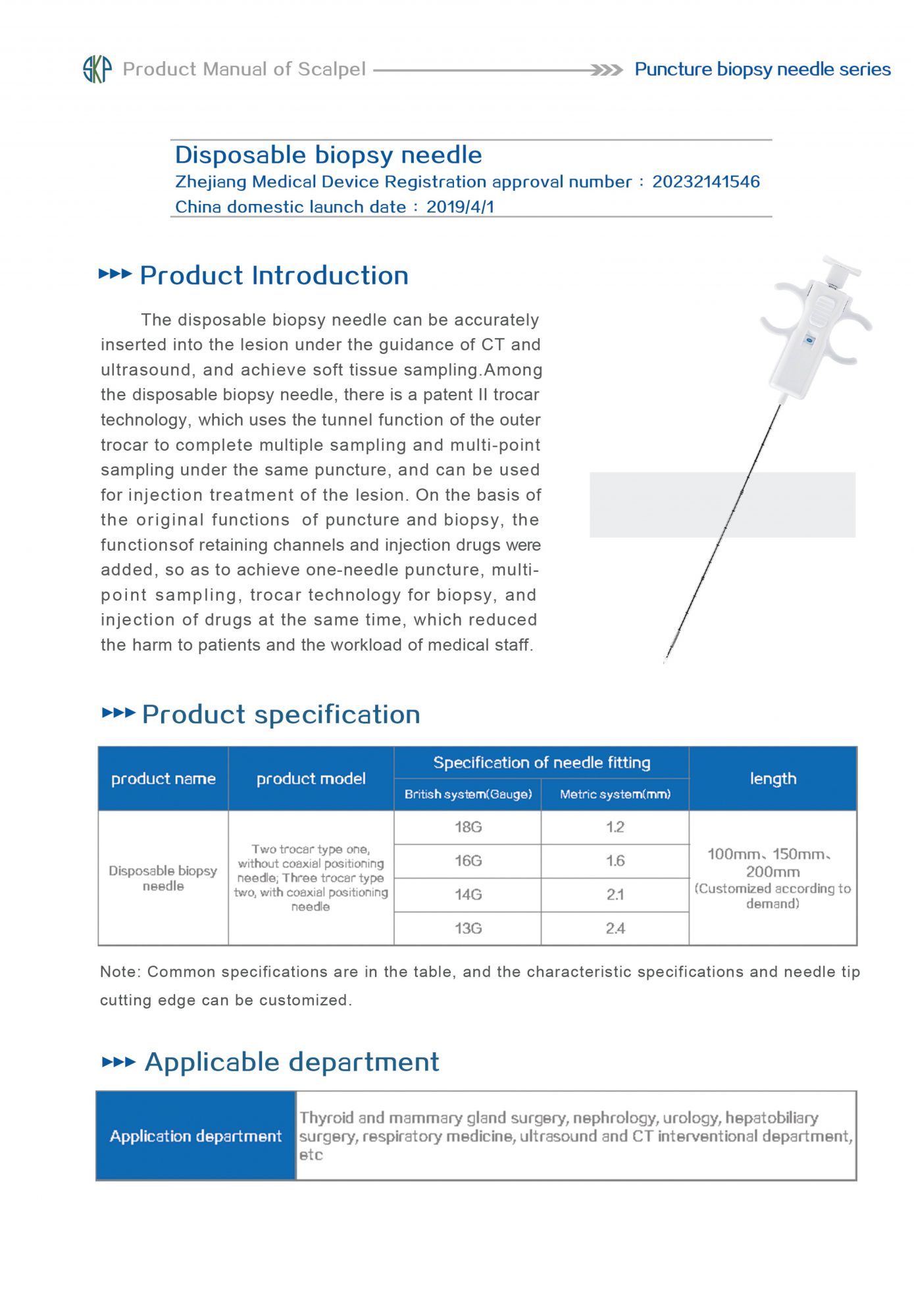 This product is suitable for percutaneous biopsy of various organs, including the kidney, liver, lung, breast, thyroid, prostate, pancreas, and various superficial organs.